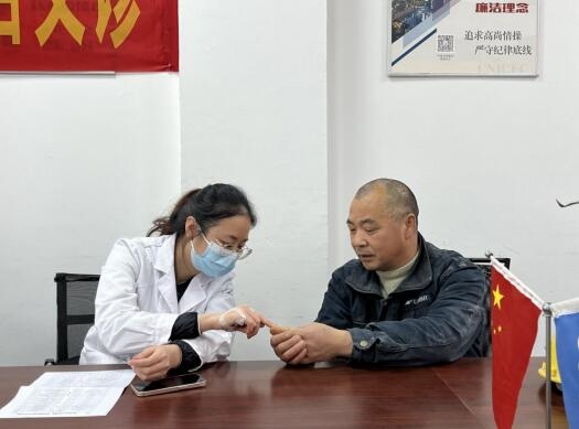 本次活動在南樾天宸二期項目部會議室開展。活動現(xiàn)場,健康專家采取面對面坐診形式,為員工進行健康答疑,提出針對性的預(yù)防和醫(yī)療建議,引導(dǎo)員工在工作之余養(yǎng)成健康生活習(xí)慣,加強多方面健康知識學(xué)習(xí)。由于長期在戶外進行施工工作,一線員工們大多存在不同程度的腰椎損傷、噪音聾、手臂震動病等職業(yè)疾病,面對此情況,專家們現(xiàn)場教授員工健康自測方法,并為員工量身打造體檢方案,便于員工下一步的健康診療。