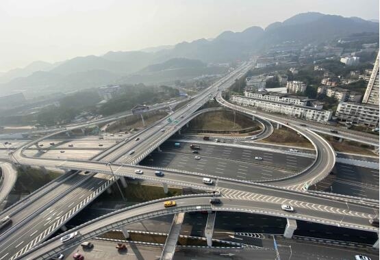 成渝高速中梁山隧道擴容改造工程三標段(西環(huán)立交及東接線工程)道路全長9.369公里,包括成渝主線拓寬改造段K6+650~K7+040 (城市快速路,標準路幅寬度35.5米),內環(huán)主線拓寬改造段K1+850~K3+480 (城市快速路,標準路幅寬度41.5米)及立交匝道A、B、C、D、E、F、G、H、I、J、K、L共12條,匝道總長4800. 431米。西環(huán)立交設計范圍內拆除12座橋梁,新建13座橋梁,接長既有涵洞3座;清水溪泄水新通道總長度636.2米,涉及改移自然河道276米,改造現(xiàn)有涵洞367米。本項目是重慶西站重要配套市政交通樞紐,對完善主城骨架道路系統(tǒng)有著極為重要的意義,項目通車后極大地緩解了交通擁堵,解決了中梁山隧道的瓶頸問題和內環(huán)交通的快速疏散問題。