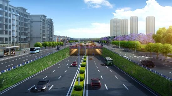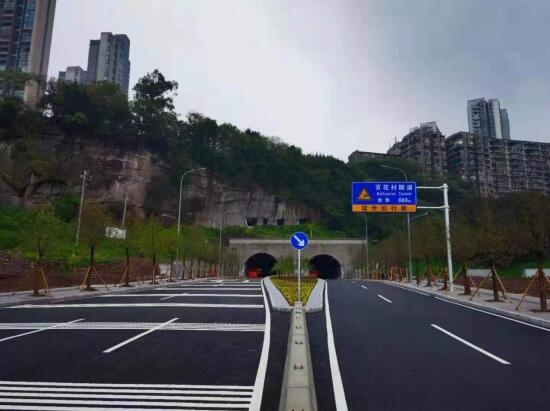 重慶市重鋼片區(qū)百花村隧道道路工程位于重慶市重鋼片區(qū),是重慶市重難點建設項目,設計道路左線全長1104.628米,其中隧道長660.525米;右線全長898.092米,其中隧道長552米。設計終點段標準路幅寬度為36.5米,隧道標準路幅寬度為9米,道路等級為城市次干路,雙向四車道,設計車速為40km/h,含隧道1座(按左、右線實施)。項目通車后,實現(xiàn)了大渡口重鋼片區(qū)東西貫通,進一步加強了九宮廟商圈與濱江片區(qū)的聯(lián)系,激活了豐富的濱江岸線資源,對加快重鋼片區(qū)的產業(yè)轉型步伐、提升片區(qū)土地利用價值、促進大渡口區(qū)社會經濟發(fā)展具有重要意義。