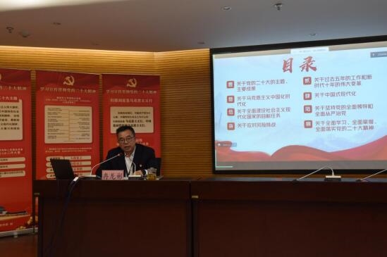 活動(dòng)現(xiàn)場(chǎng),市建科院公司黨委書記、董事長(zhǎng)冉龍彬,聚焦深入學(xué)習(xí)貫徹黨的二十大精神,以《全面學(xué)習(xí)、全面把握、全面落實(shí)黨的二十大精神》為題,面向公司廣大黨員干部及生產(chǎn)經(jīng)營(yíng)一線職工,作了精彩而生動(dòng)的宣講報(bào)告。