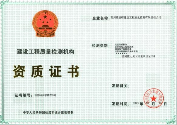 近日,經(jīng)四川省住房和城鄉(xiāng)建設(shè)廳核準(zhǔn),重慶設(shè)計(jì)集團(tuán)市建科院所屬子企業(yè)四川渝建研建設(shè)工程質(zhì)量檢測(cè)有限責(zé)任公司(以下簡(jiǎn)稱“渝建研”)申請(qǐng)重新核定的建設(shè)工程質(zhì)量檢測(cè)機(jī)構(gòu)資質(zhì)于2023年3月成功獲批并順利取證。