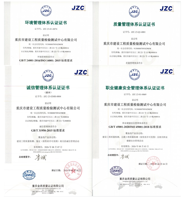 近日,經(jīng)過質(zhì)量、環(huán)境、職業(yè)健康安全、誠信管理體系現(xiàn)場評審,重慶設(shè)計(jì)集團(tuán)市建科院公司所屬子公司——重慶市建設(shè)工程質(zhì)量檢驗(yàn)測試中心有限公司(簡稱檢測中心)順利通過2023年度ISO資質(zhì)再認(rèn)證評審。