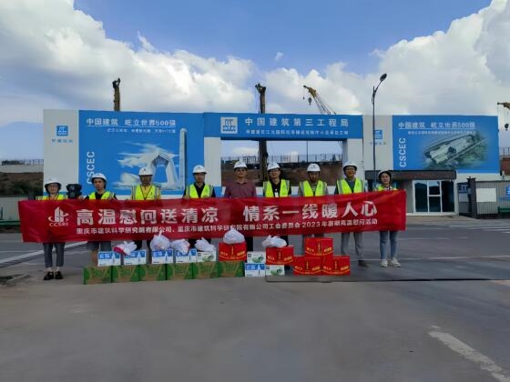 為進一步做好夏季一線職工防暑降溫工作,8月9日下午,重慶設(shè)計集團所屬子企業(yè)重慶市建筑科學研究院有限公司黨委委員、監(jiān)事會主席王釗赴江北分中心承接第三方檢測和監(jiān)測的“重慶江北國際機場T3B航站樓及第四跑道工程航站區(qū)工程”項目開展高溫慰問活動,為奮戰(zhàn)在高溫一線的項目部人員送上一份清涼、一份關(guān)懷。