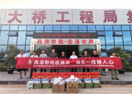 高溫送清涼,關(guān)懷潤人心。為落實好夏季防暑降溫工作,助力一線生產(chǎn),8月11日下午,重慶設(shè)計集團市建科院公司黨委委員、副總經(jīng)理、總工程師張京街同志赴江南分中心承接的“軌道交通24號線一期質(zhì)量檢測”項目開展慰問活動,為高溫下堅守在項目一線的檢測人員送上清涼慰問品。技術(shù)質(zhì)量安全部和生產(chǎn)經(jīng)營發(fā)展部相關(guān)人員陪同慰問。