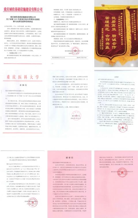 今年以來,公司聚焦公共設(shè)施完善和區(qū)域互聯(lián)互通水平提升,助力人居環(huán)境改善和生產(chǎn)生活品質(zhì)提升,承擔(dān)的渝長高速復(fù)線連接道工程(海騰立交-南橋頭立交)、大田灣片區(qū)市政工程、重慶醫(yī)科大學(xué)政策性租賃住房和縉云校區(qū)人才住房新建工程、重慶市中醫(yī)院中醫(yī)藥傳承創(chuàng)新中心、重慶醫(yī)療器械質(zhì)量檢驗中心醫(yī)療器械檢驗檢測能力建設(shè)項目、李雪芮全民健身運動中心工程等多個項目相繼獲業(yè)主方感謝信。