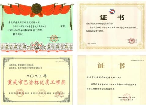 在蔡家嘉陵江大橋修建過程中,項(xiàng)目部創(chuàng)新性監(jiān)理工作,建立健全全壽命質(zhì)量控制體系,采用無人機(jī)進(jìn)行項(xiàng)目智慧管理,利用數(shù)據(jù)信息對施工現(xiàn)場進(jìn)行統(tǒng)一調(diào)配;采用智慧工程——建設(shè)工程協(xié)同管理平臺(tái),將工程項(xiàng)目全生命周期中的信息模型、數(shù)據(jù)信息、管理資料等集合顯示處理,實(shí)現(xiàn)全過程協(xié)同管理,顯著提高工作效率;率先實(shí)行了二維碼唯一標(biāo)識(shí)見證取樣管理制度,實(shí)現(xiàn)每一組試件、每一份報(bào)告均可溯源。項(xiàng)目獲評國家優(yōu)質(zhì)工程獎(jiǎng)、市政工程最高質(zhì)量水平評價(jià)(原國家市政工程金獎(jiǎng))、重慶市市政工程金杯獎(jiǎng)、三峽杯優(yōu)質(zhì)結(jié)構(gòu)工程獎(jiǎng)、巴渝杯優(yōu)質(zhì)結(jié)構(gòu)工程獎(jiǎng)、重慶市智慧工地示范項(xiàng)目。