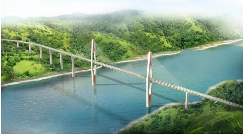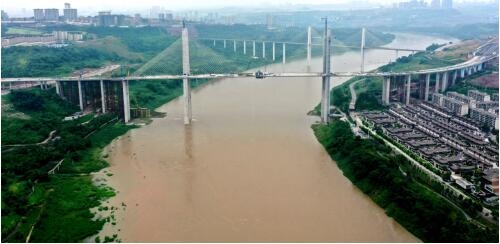 蔡家嘉陵江軌道專用橋?yàn)殡p線軌道雙索面斜拉橋,全長1250米,由南北引橋和主橋組成,橋跨為連續(xù)梁、雙索面斜拉橋、連續(xù)鋼構(gòu)引橋組成,其中主橋長640米、主跨250米、主橋面距河床距離100米。在設(shè)計(jì)時(shí)兼顧了功能性、景觀性以及可實(shí)施性,最終選擇了與環(huán)境協(xié)調(diào),經(jīng)濟(jì)實(shí)惠、施工可實(shí)施性強(qiáng)的斜拉橋,由于橋墩高、橋面窄,主橋?qū)挾认鄬τ谄胀ǖ目缃反髽蚋?,橋身顯得纖細(xì),在云霧中呈現(xiàn)婀娜多姿的柔美姿態(tài)。
