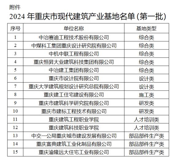 近日,重慶設(shè)計(jì)集團(tuán)所屬子企業(yè)重慶市建筑科學(xué)研究院有限公司(簡稱“市建科院”)獲批“重慶市現(xiàn)代建筑產(chǎn)業(yè)基地”(研發(fā)類)。
