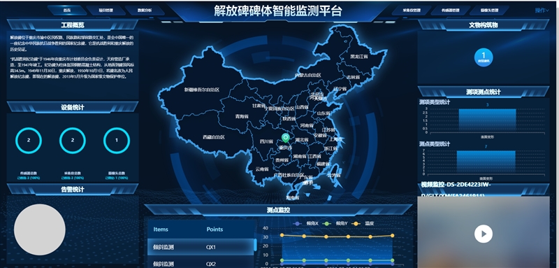 重慶人民解放紀(jì)念碑位于重慶市渝中區(qū)民權(quán)路、民族路和鄒容路交匯處,是重慶市的標(biāo)志建筑物之一,被列為國(guó)家級(jí)文物保護(hù)單位。檢測(cè)中心受委托對(duì)其進(jìn)行安全評(píng)估和智能監(jiān)測(cè)。檢測(cè)中心克服現(xiàn)場(chǎng)條件限制,針對(duì)文物本體特點(diǎn)優(yōu)化檢測(cè)方式,開(kāi)展了全方位的結(jié)構(gòu)檢測(cè)。目前,評(píng)估結(jié)果已順利通過(guò)專(zhuān)家評(píng)審,為后續(xù)保護(hù)修繕工作提供技術(shù)支撐。檢測(cè)中心以文物數(shù)字化建設(shè)和智能化保護(hù)為課題,為解放碑量身打造了一套文物智能化監(jiān)測(cè)系統(tǒng)。