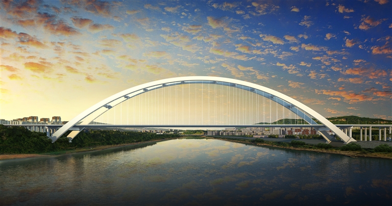 瀘州市藍(lán)田過江通道(藍(lán)田長(zhǎng)江五橋)及連接線工程是《瀘州市跨江通道專項(xiàng)規(guī)劃(2014-2030)》中規(guī)劃的新建8座跨江通道之一,項(xiàng)目包含跨江主橋、兩岸引橋、學(xué)院中路升級(jí)改造、未來大道延伸線工程等,總投資約35.74億元。其中,主橋凈跨徑為570m鋼箱拱橋、雙向六車道,總寬48.5m,總長(zhǎng)度為612m,為目前在建世界最大跨徑中承式鋼箱拱橋。