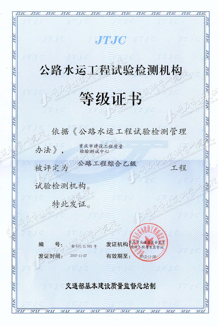 • 公路水運工程監(jiān)理企業(yè)資質證書