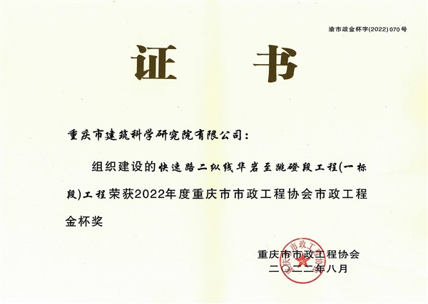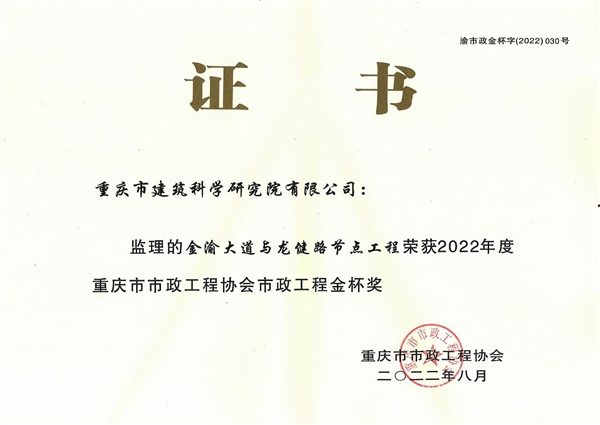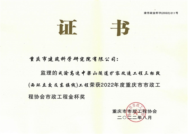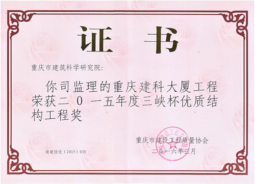 建科大廈工程獲三峽杯優(yōu)質(zhì)結構工程獎