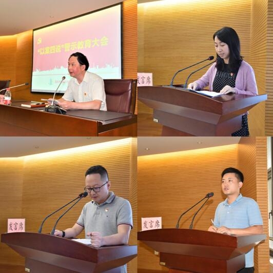 公司法務審計部黃蕾、江北分中心陳放分別從“法”和“德”的角度交流了體會,檢測一分院職工李剛談了個人感受。通過“以案四說”專題教育會,參會黨員干部再次受到了警醒,思想上產生了強烈震撼,達到了以案為鑒、深刻汲取教訓的效果。