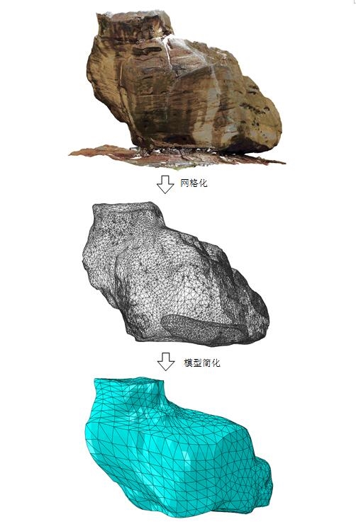 在對紗帽石穩(wěn)定性進行評估過程中,市建科院技術(shù)團隊與重慶交通大學相關(guān)專家經(jīng)過多次溝通,確定了定性分析+數(shù)值模擬的評估方案。評估中定性分析了紗帽石的當前所處環(huán)境、形態(tài)特征、結(jié)構(gòu)特征、破壞模式等,作出紗帽石穩(wěn)定性定性分析初步評價。另外,評估采用三維激光掃描儀,對紗帽石進行3D掃描,復(fù)原出紗帽石的三維模型,再將其導(dǎo)入有限元計算軟件中,建立含有紗帽石的邊坡模型,對其在多種荷載工況下的穩(wěn)定性進行了有限元計算,最終提出了合理的評估和建議。