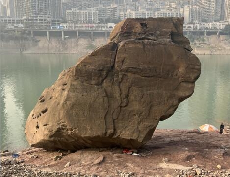 根據(jù)規(guī)劃設(shè)計,主城區(qū)“兩江四岸”治理提升嘉陵江岸線貫通工程嘉濱路大溪溝段項目擬建步道有約65m位于紗帽石文物保護建設(shè)控制地帶范圍內(nèi),約32m位于紗帽石文物保護范圍線內(nèi),且樁基施工位置臨近紗帽石。根據(jù)渝中區(qū)文化和旅游委員會以及委托方的要求,市建科院受托對紗帽石穩(wěn)定性進行評估。